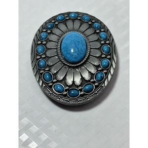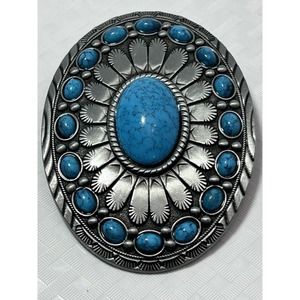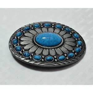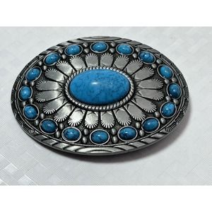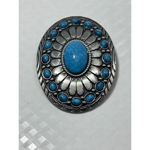Retro Oval Turquoise Colored Stone Alloy Belt Buckle