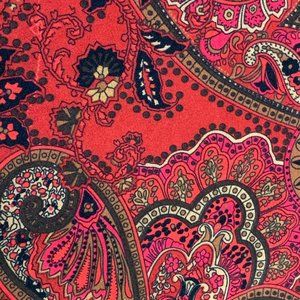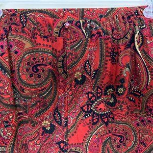 Retro Paisley A-Line Skirt in Burnt Orange/Red Size 12. This skirt is in excellent condition! The zipper works great and even has a little elastic in the waist for comfort & stretch! Depending on leg height, this skirt will hit closer to the mid-shin area. Please see measurements below. Would be perfect for a boho chic look!