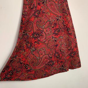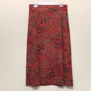 Retro Paisley A-Line Skirt in Burnt Orange/Red Size 12