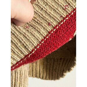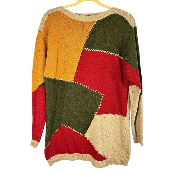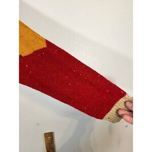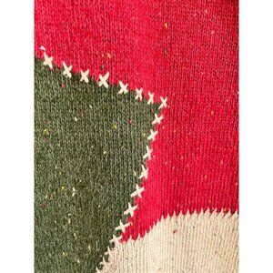 Retro Patchwork Knit Sweater M Red Colorful Festive Holiday Chic Western 80s