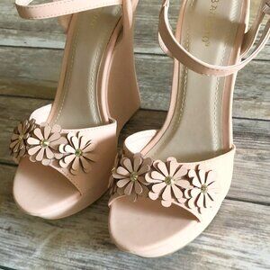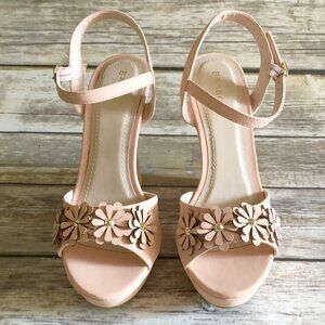 Ankle Strap, Laser cut flowers, Platform Wedge, Size 9, Man-made materials