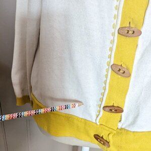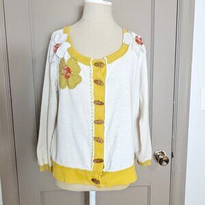 Nick & Mo Anthropologie Pin up Rockabilly Sweater Girl Cardigan Floral Applique Sweater Wood Buttons Retro