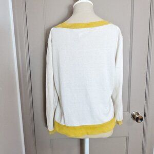 Good condition. See all photos for a closeup of a small spot. Size large. Pit to pit is approximately 21” across. Top of shoulder to bottom hem is approximately 22” long.