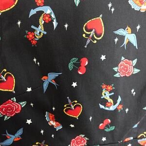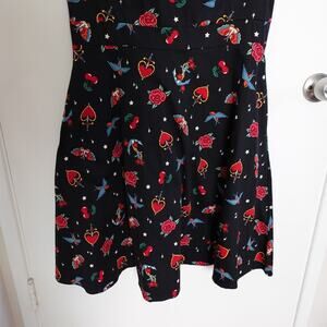 Retro Pin-Up Rockabilly Black Printed Fit and Flare Sleeveless XL Dress 1950s Party Swing Dance Cotton Blend Tattoo Print