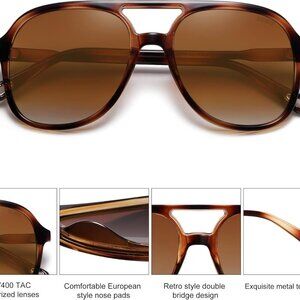 Product details Origin Imported About this item UV400 POLARIZED TAC LENSES - Polarized TAC lenses filter out glare and UV protection blocks harmful rays. RETRO VINTAGE AVIATOR STYLE - Classic vintage double bar square aviator frame complements various face shapes. Unisex style suitable for running, walking and casual wear. PRODUCT MATERIALS - Solid construction with polycarbonate frame, strong metal hinges and HD TAC polarized lenses. PRODUCT DIMENSION - Lens Width: 55mm | Lens Height: 52mm | Temple Length: 141mm | Nose Bridge: 18mm | Total Frame Width: 143mm. PRODUCT PACKAGING - Sunglasses*1, microfiber pouch*1, microfiber glasses cleaning cloth*1, glasses box*1. See more About this item