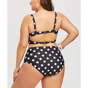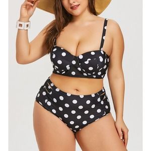 Retro Polka Dot High-rise Bikini Top Bottom Padded Swimsuit Plus Size Swimwear