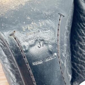 Retro Prada Black Pebbled Leather Fringe Detail Square Toe Slingback Heel IT 37