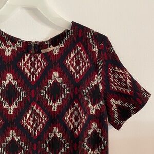 Forever 21 Aztec geometric art deco printed dress. Short sleeve shift style dress with back zipper closure. Red, white, and navy blue. Excellent career wear.