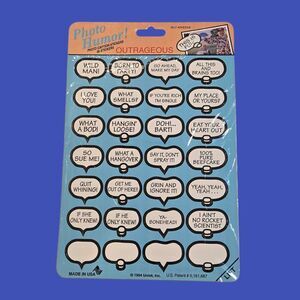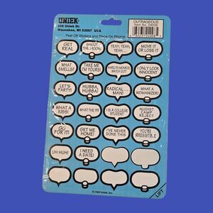 3. One - Double Sided 1994 Uniek "Outrageous" Photo Caption Stickers 7.5" x 5.5"