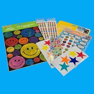 1. One Sheet - Sandylion Giant Stickers Prismatic Colorful Smiley Faces 9" x 7"