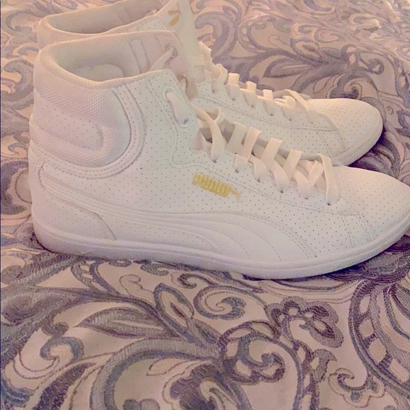 Retro white gold emblem woman’s size 10 Puma very lightly worn