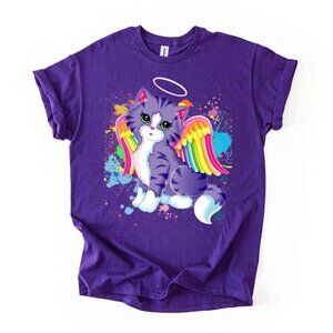 Retro Purple Angel Cat Tee Women's 90s Throwback Wings Graphic Shirt Y2K Kitsch