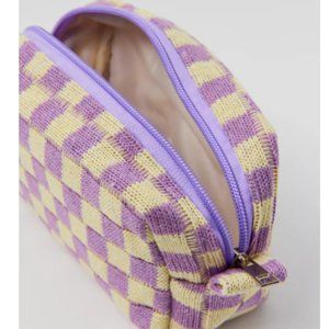 Purple Cream White Checkered Versatile Tote to store makeup, brushes, writing tools or use a small clutch purse.