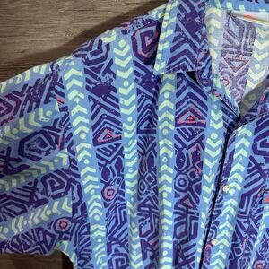 Retro Quiksilver Geometric Surf All over Print Button Up Large Beach Vtg Rare