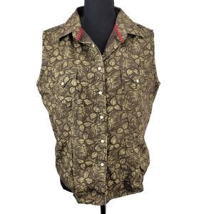 Retro ROUGHSTOCK Sleeveless Brown Patterned Button-Up Shirt
