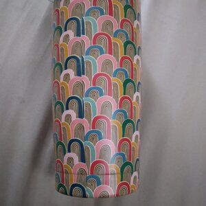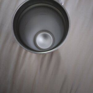 This tumbler is a metal double walled tumbler that holds 17oz/500 ml of either hot or cold liquid. It's in great shape and will keep your drink the temperature it's meant to be.
