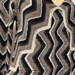 Retro Revival Boho Dress Wool Coastal 70s Chevron XS Navy Blue Free People