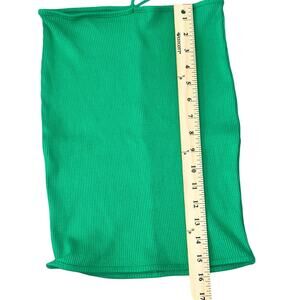 Retro Ribbed Halter Shirt, Tube Top Stretch Strapless Green S