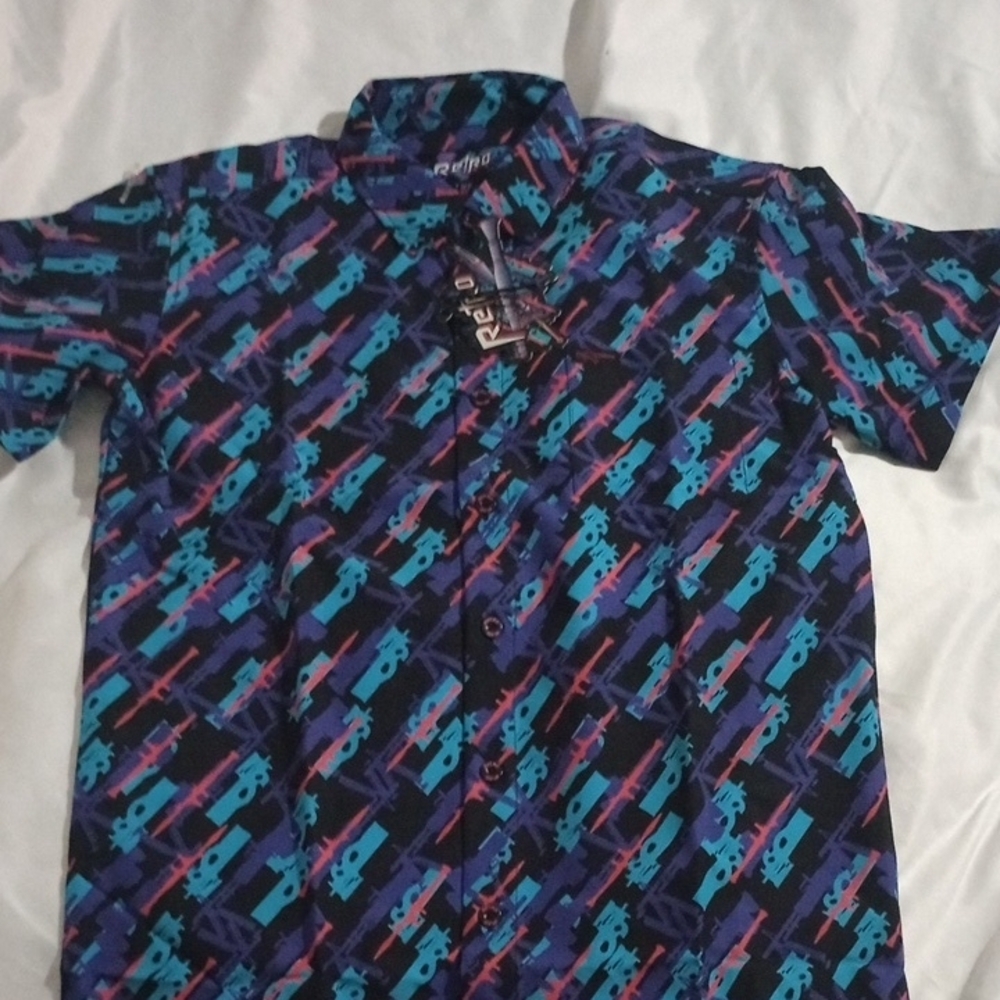 Stand out with this vibrant multicolor patterned shirt. Perfect for any casual occasion. "The Livery" is currently out of stock on the company website. Don't miss your chance to get one of the most popular designs!