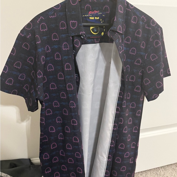 Embrace nostalgia with the Men's Shirt. Featuring a stylish black and purple design, this shirt is perfect for fans of classic arcade games. Comfortable and trendy, it's a great addition to any wardrobe.
