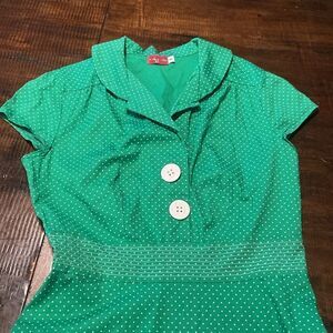 Retro Ruby Rox green and white polkadot dress juniors size 9