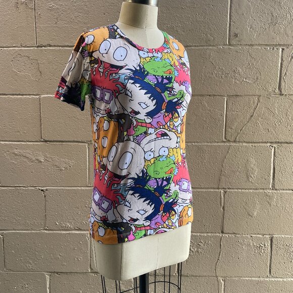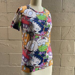 90s kids who had cable, I was jealous and coveted your Nickelodeon access! Allover print Rugrats T-shirt with short sleeves. Fits like a slim men's small.