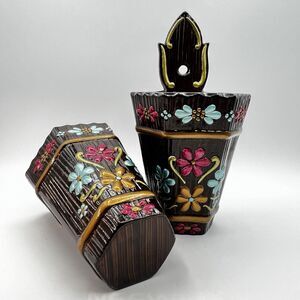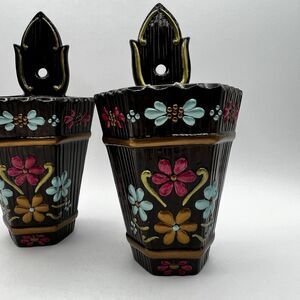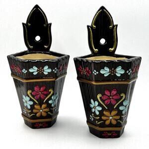 Retro Set 2 Atlantic Mold Wall Pockets 1970s Flowers Barrels Pink Blue Brown 10"