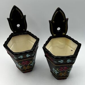 Each measures 5 x 10". Hand painted Atlantic Mold. Brown with metallic gold, pink, blue accents. No chips or cracks. Clean!