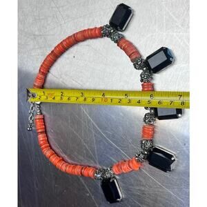Retro Short Choker Necklace Costume Jewelry Coral Black Silver Rhinestone Glam