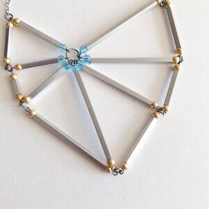 Abstract Web Design, Gold Bead Joints, Lobster claw clasp with extender, Matte Silver