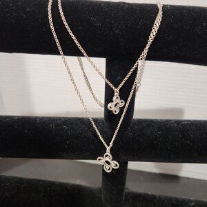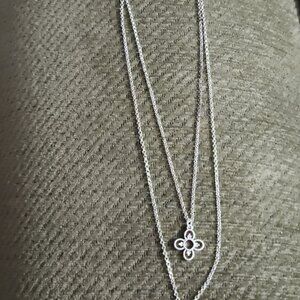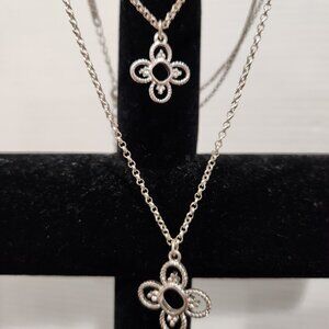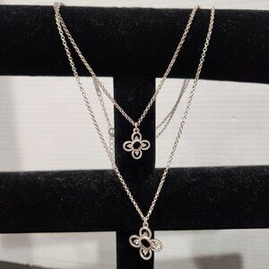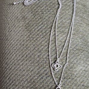 This multi-layered necklace features a stunning flower design with silver-tone chains. (2 Strand) Ideal for adding a touch of elegance to formal attire, its versatile aesthetic complements a range of styles.