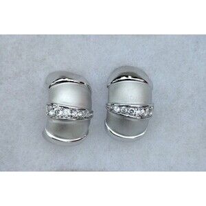 Retro Silver Tone Cuff Earrings with Cubic Zirconia Pave Accents.