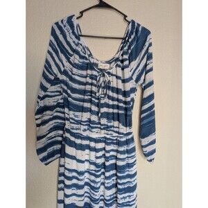 Retro Simone Maxi Dress M Blue & White Tie-Dye Boho Beach Cover-Up 100% Rayon