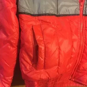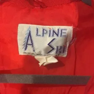 Alpine Ski Jacket. No size, guessing a medium: Pit to pit 21.5”, shoulder to hem 25”, cinched waist at the bottom is 18” across (without stretching). Some minor wear around pockets.