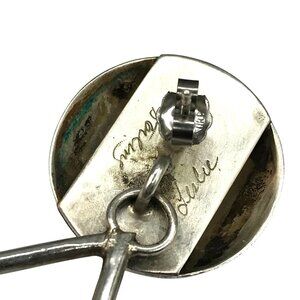 Retro Statement Geometric Dangle Earrings, Signed Artisan Leslie, Sterling Silve