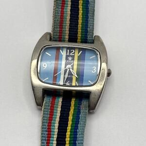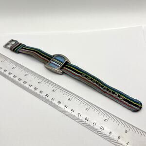 Retro Striped Silver Watch. Fully functional with brand new batteries. Adjustable band fits 6 1/2 in wrist or near