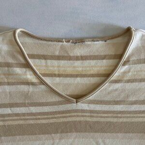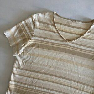 Retro Striped Tan V-Neck Basic Tee Shirt XL