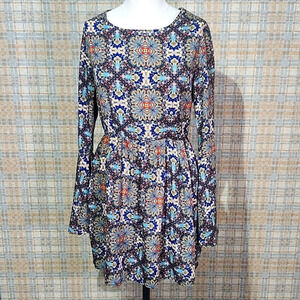 Retro Style Bell Sleeve Mini Dress – Psychedelic Print, Size Large, One Clot