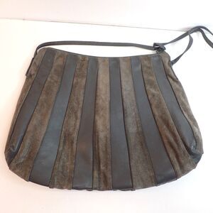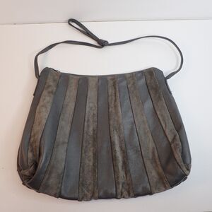 Retro Style Boho Leather & Suede Striped Shoulder Bag Gray Made in Uruguay