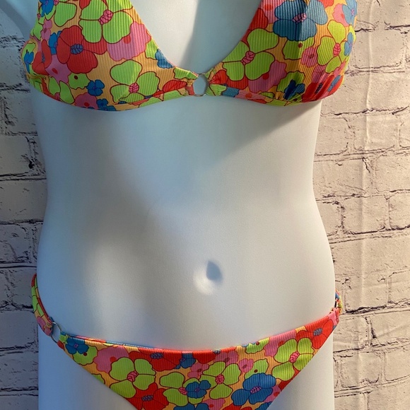 Retro Style Neon Bikini 👙 with Ring Detail, Size M