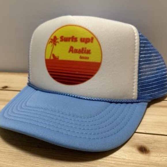 Vintage Surfs Up Hat Austin Texas Trucker Hat Surfing Hat Adjustable light blue