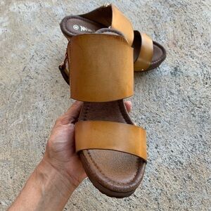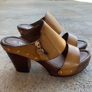 Retro Tan Heels fits one size small… listed as 7.5 because it fits a 7.5 but shoe says size 8.5