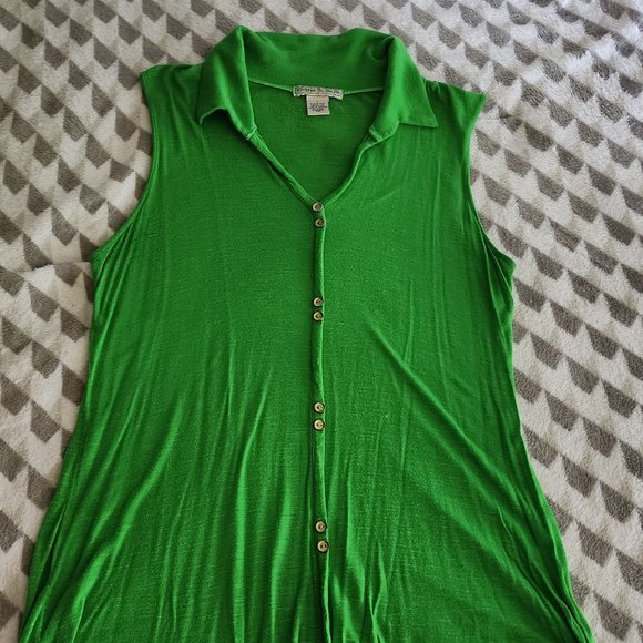 Retro Vintage tank top %100 Ravon, stretchy material. Apple Green with buttons along the front.