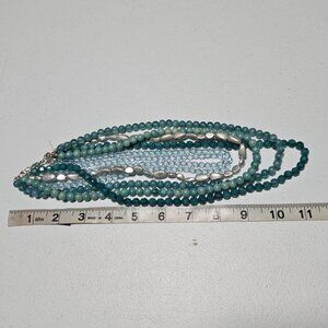 Retro Teal Multi Strand Beaded Statement Choker Necklace Fashion Jewelry Women