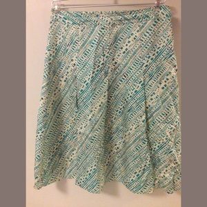 Retro Teal Print Pleated Silk Skirt