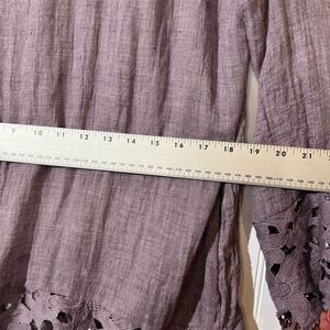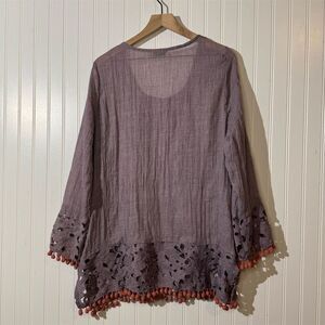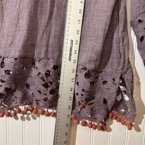 Retro Threads Boho Tunic Top Women’s L Purple Crochet Bell Sleeve Blouse