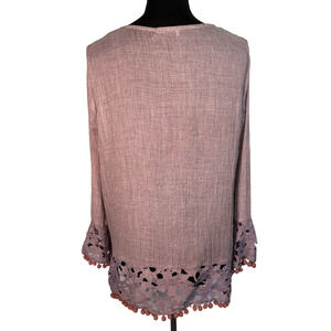 Retro Threads Purple Guazy Lace Trim Bell Sleeve Tunic, Size L (Measured)