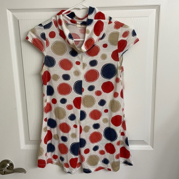 Soft material Some pilling shown in pics Cap sleeves Opens up toward the middle, cute detail From a boutique