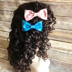 Retro Torture Couture Faux Leather Hair Bows Clips Pink Baby Blue Set of 2
