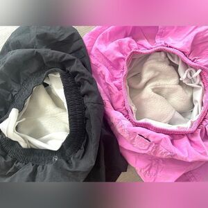 The care tag is fading so it’s difficult to read the material listing. I believe the exterior is 100% Nylon and the lining is a blend. The “Trek Wear” logo on the pink pair had faded. Both have a little bit of stretch in the waist. No major signs of wear, tear, rips, holes, stains or smells. Comes from a pet friendly and smoke free home. I offer fast 1-3 day shipping. 📥🛍️